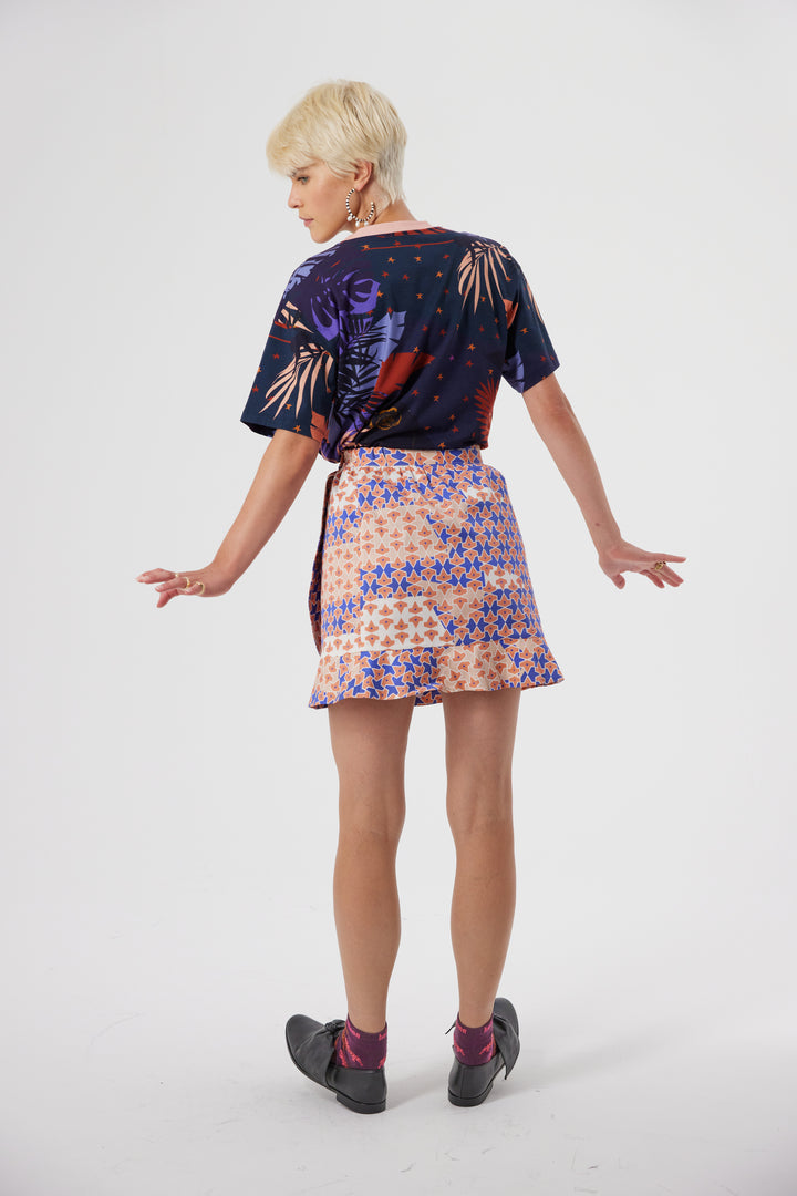 Here is our new model in our Heimstone collection: the T-shirt Dede. A well-cut and loose t-shirt is always a must in a woman’s closet. This summer Heimstone wanted to present a classic piece with a colorful print created by Heimstone. Every piece has its own placed pattern so that everyone can have a unique version of the Dede t-shirt.