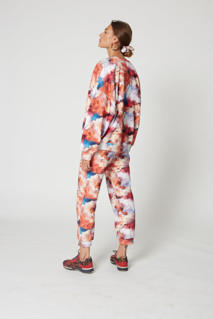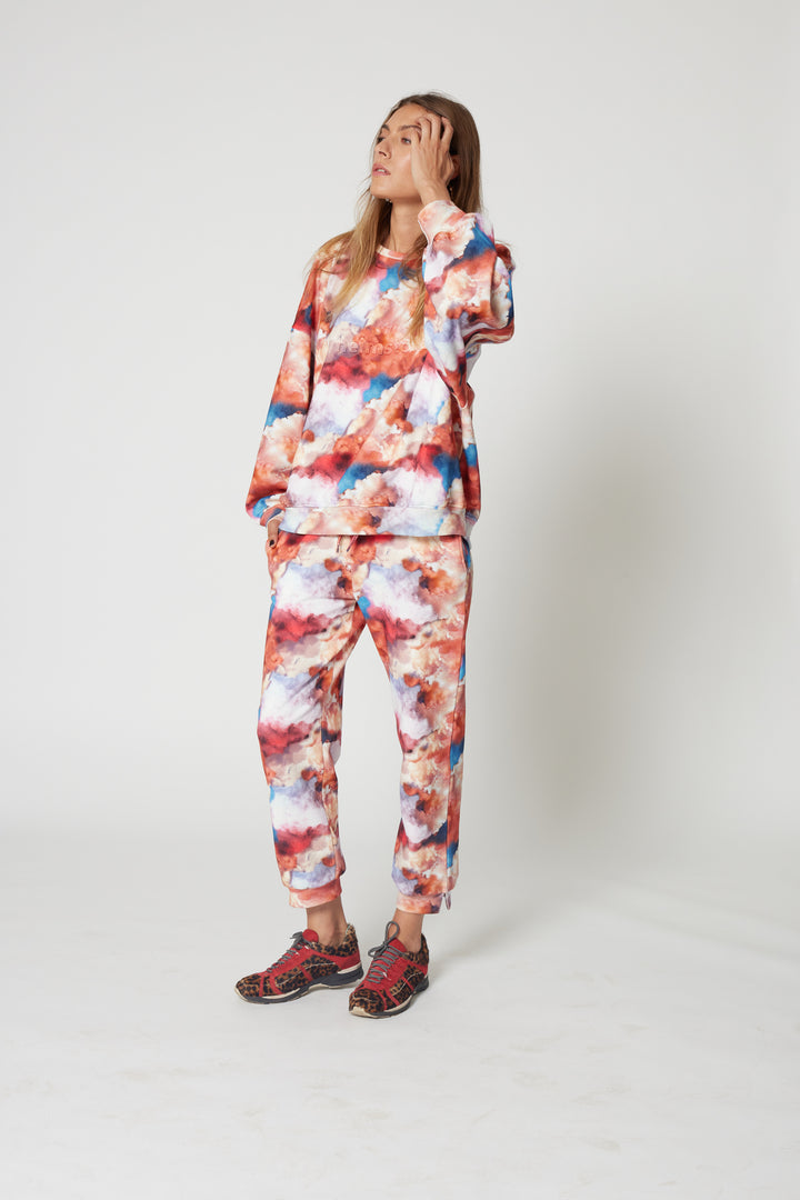 Designer tips: “At Heimstone, I love having fun with full looks and matching tops and pants. I recommend you wear your Harlem jumper matched with our Melchior pants in Madone print to turn your sportswear into a suit”.