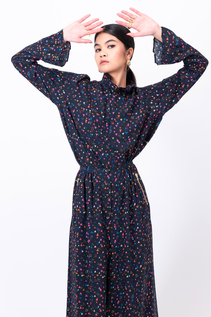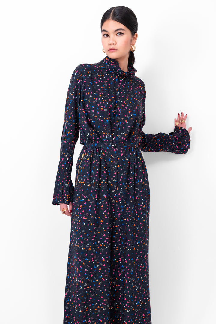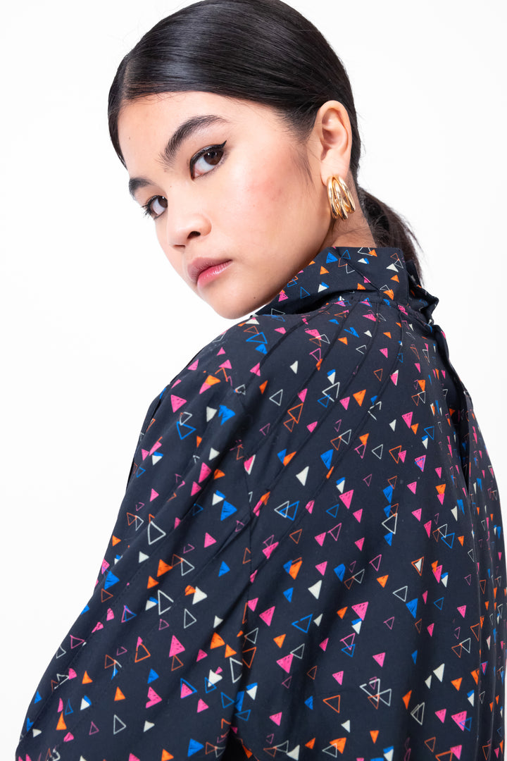 Designed in a flowing viscose fabric, the Muse shirt reveals the beauty of the Zodiac print. With plenty of stitching along the arms and pleated cuffs, this shirt has a pretty look. There is a collar detail that enhances the neck and gives a sophisticated touch to the shirt.