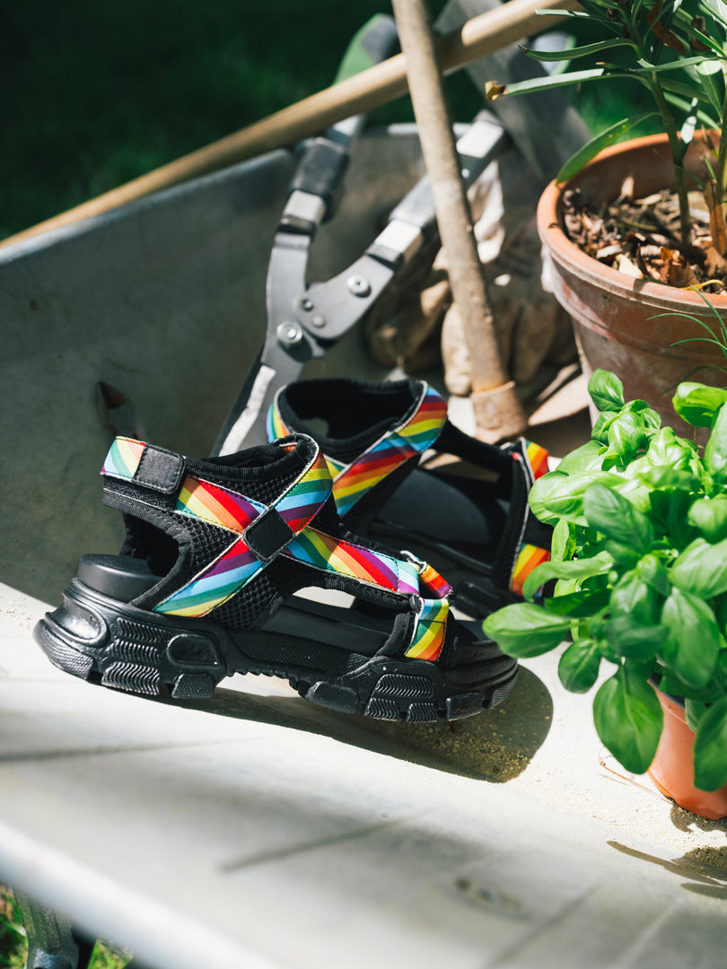 As comfortable as children’s sandals, Alix Petit completes its shoes collection with the Travis sandals, whose design mixes comfort and adherence. Made of faux leather, they feature a comfortable chunky sole with rainbow velcro closures at the forefoot and ankle for great support. The all-terrain shoes that fit with everything.