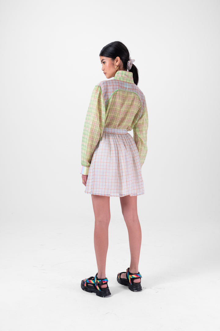Made in a blend of silk and cotton, the Tokyo shirt is back to the Black Seeds capsule, with a light veil in Rosary Vichy. It mixes the three newest fabrics of the capsule and offers us a cocktail of explosive colours and patterns. This piece combines a contemporary wide cut with a structured Mao collar for a sophisticated and sensational shirt.