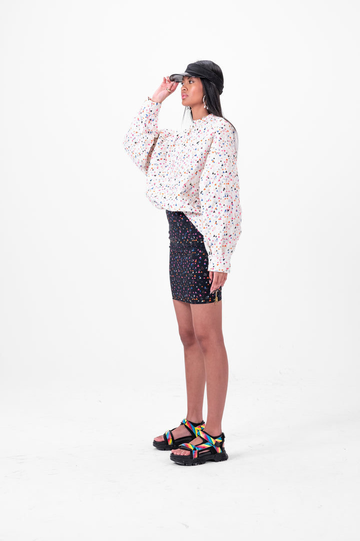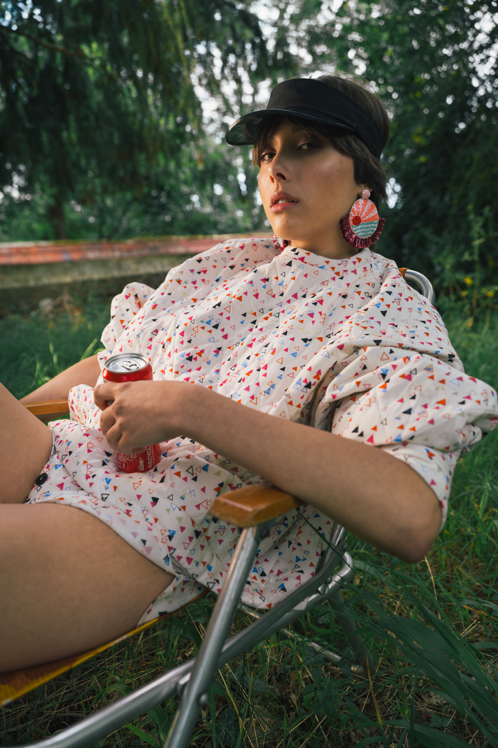 The Harlem jumper padded in Fior Di Latte print will add a sleek yet sophisticated touch to your wardrobe. It features a fitted collar, wide sleeves and a large bust, all padded and quilted with an invisible zip at the back.