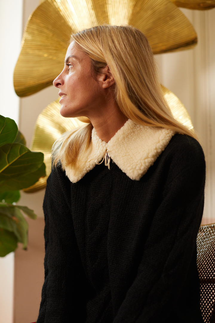 The trapper collar in natural wool is a simple yet very unique accessory. The high quality of the wool make the collar the perfect accessory for your look espacially with a round collar sweater or even a simple jacket. It will upgrade your look for this winter.