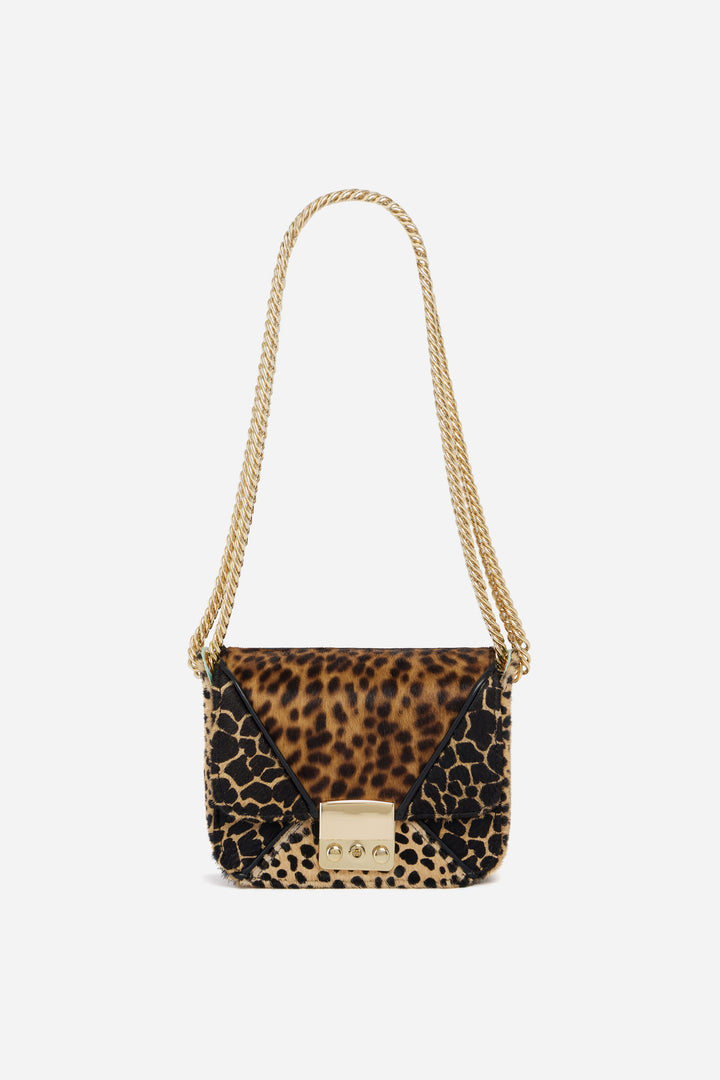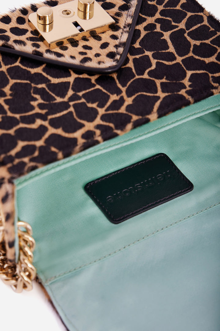 Designed in our three signature animal printed leather, it now features a new bold, heavy and golden chain that can be worn long as a crossbody or short as a handbag. Its two inside pockets will add practicality to your everyday life and its brand new opening lock adds a touch of fanciness. The Vivian bag is the perfect gift to offer this Christmas or an absolute must-have to add to your Christmas wishlist.